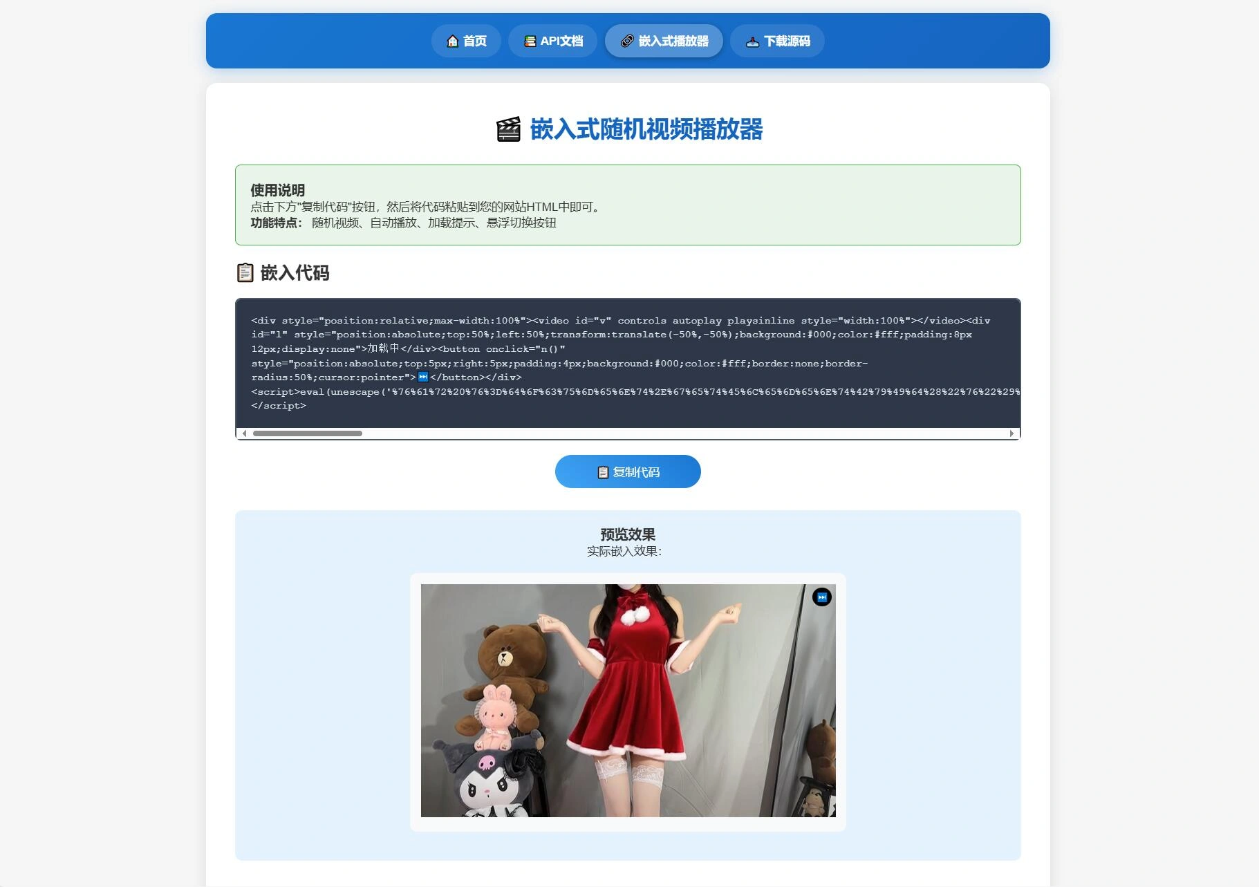 6.加入嵌入式播放代码功能,在线播放统计,在线人数等