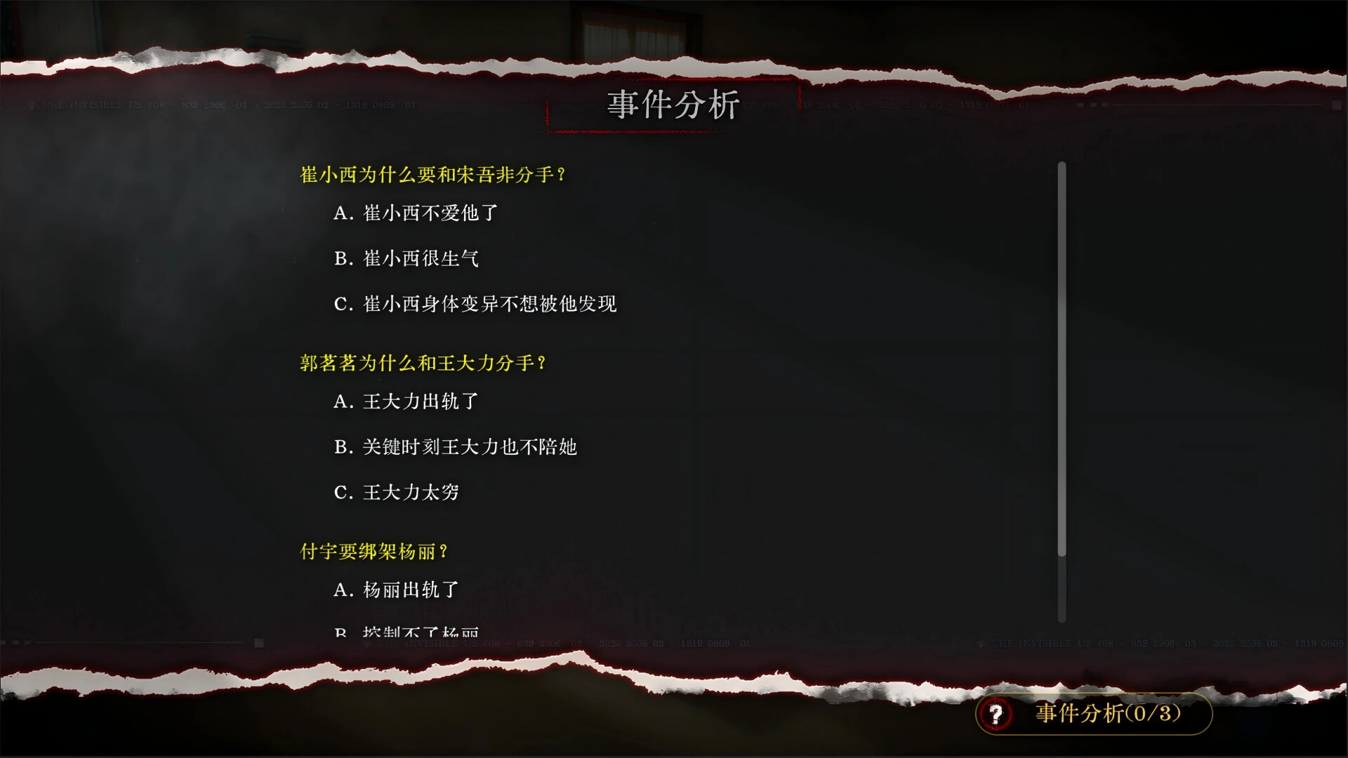 《看不见的我们》是一款全动态影像真人悬疑推理游戏。玩家将扮演男主角宋吾非,因为从小的原生家庭问题,导致了容易害怕和逃避的性格。在进入高中后遇到了校霸,遭到各种霸凌,当主角毫无办法之际,一位勇敢的女同学挺身而出,组织大家反抗霸凌。最终形成了一系列悬疑事件,等待玩家去推理还原所有事情的真相。