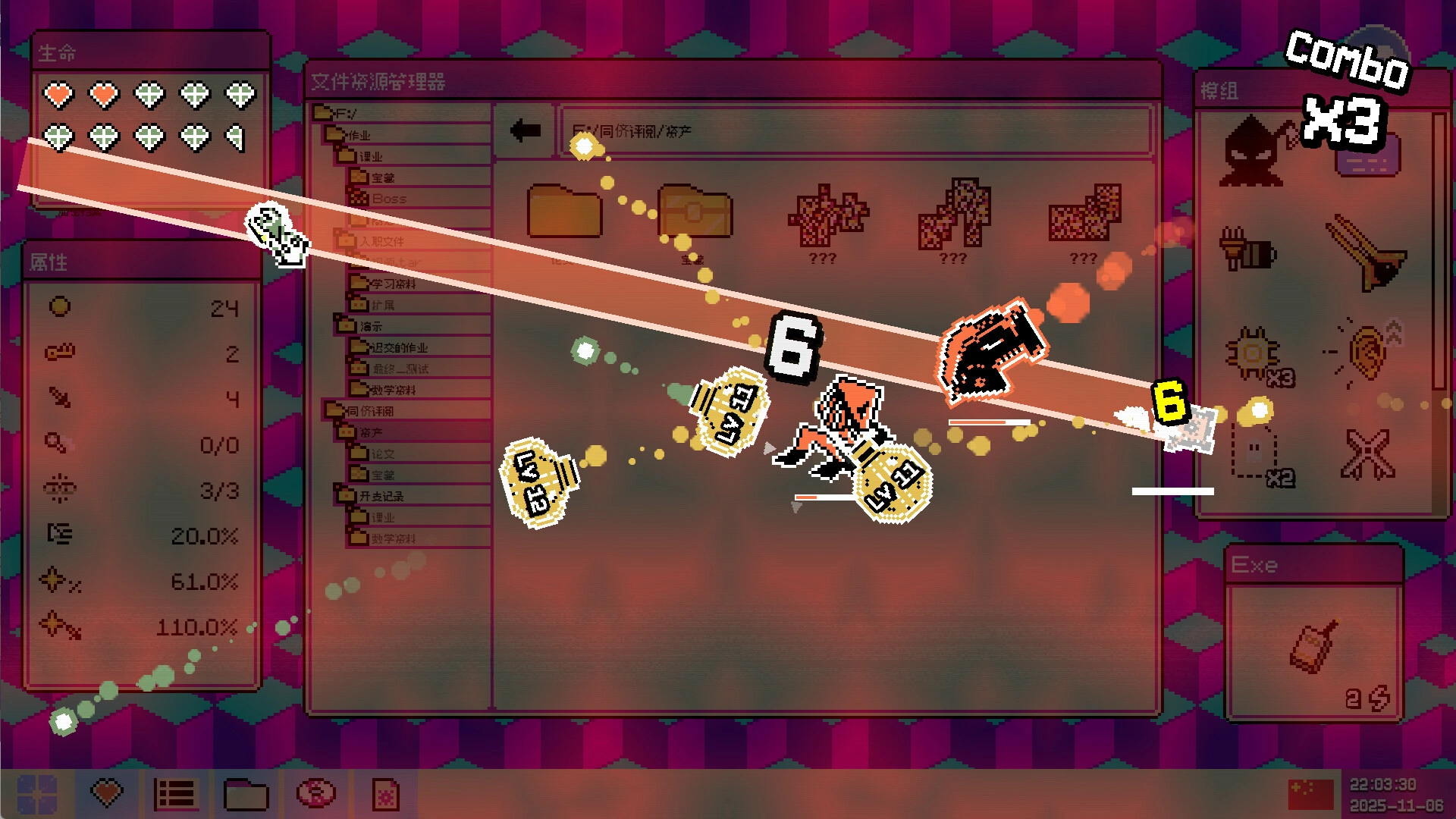 在这被病毒深度感染的电脑操作系统中,成为桌面鼠标的终极化身!在这款爽快的动作肉鸽游戏中,穿梭于如地牢般的文件夹系统,荡清病毒,并通过EXE应用程序不断升级变强!
