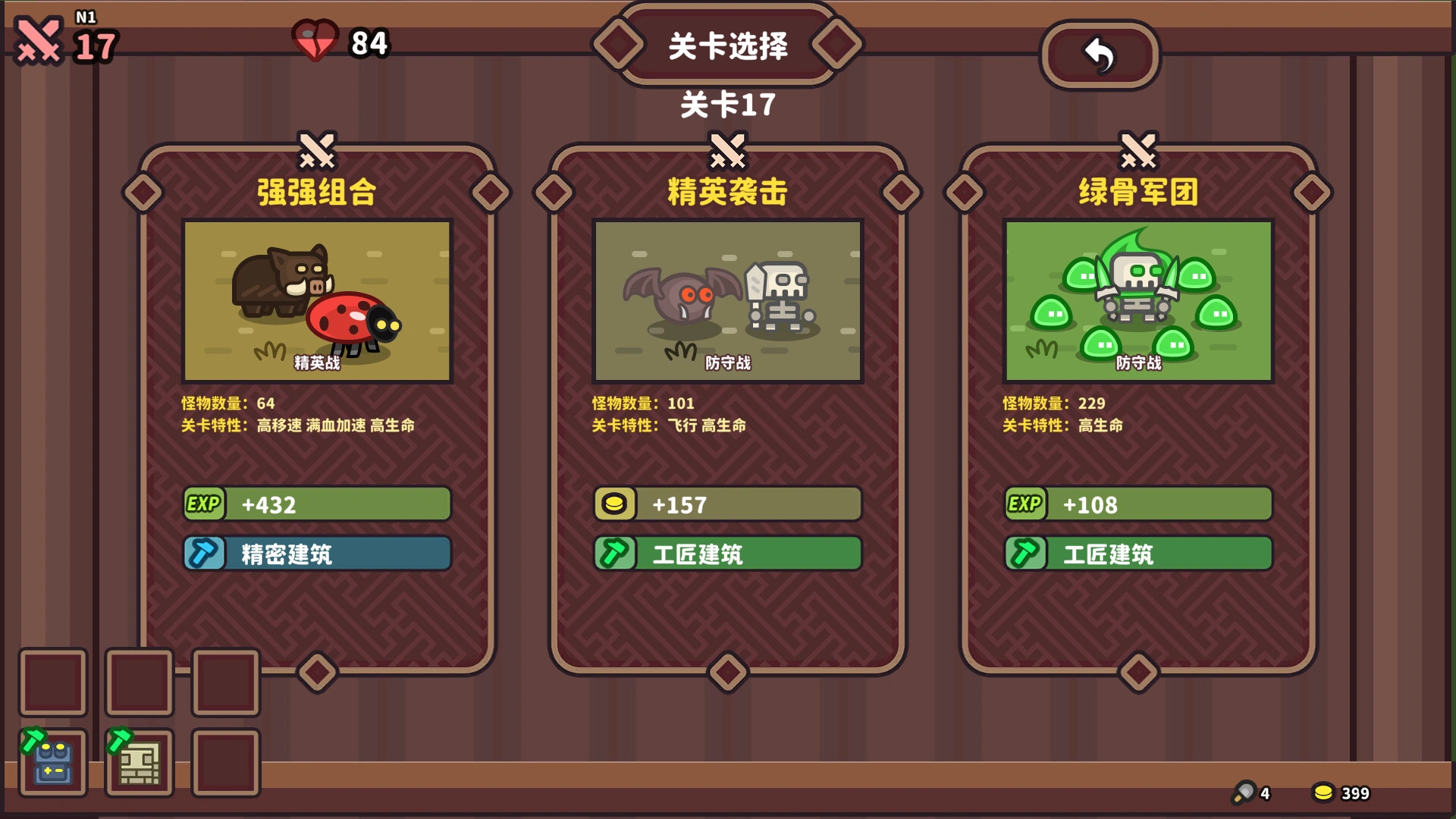 《元素与构筑》是一款2D俯视角塔防游戏,在不同元素的技能中组成你的专属流派,在随机生成式的关卡中使用建筑奖励来搭建自己独一无二的迷宫,在一波波怪物潮水中努力生存下去,获得胜利
