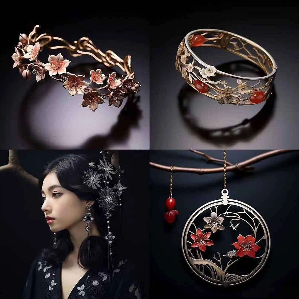 463个Midjourney珠宝摄影提示词-涵盖戒指,项链,耳环,手链,宝石和奢侈配饰