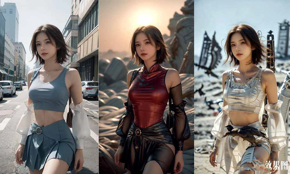 3.支持只换服装或者更换场景(内置100多套),当然不用lora模型只用提示器也可以